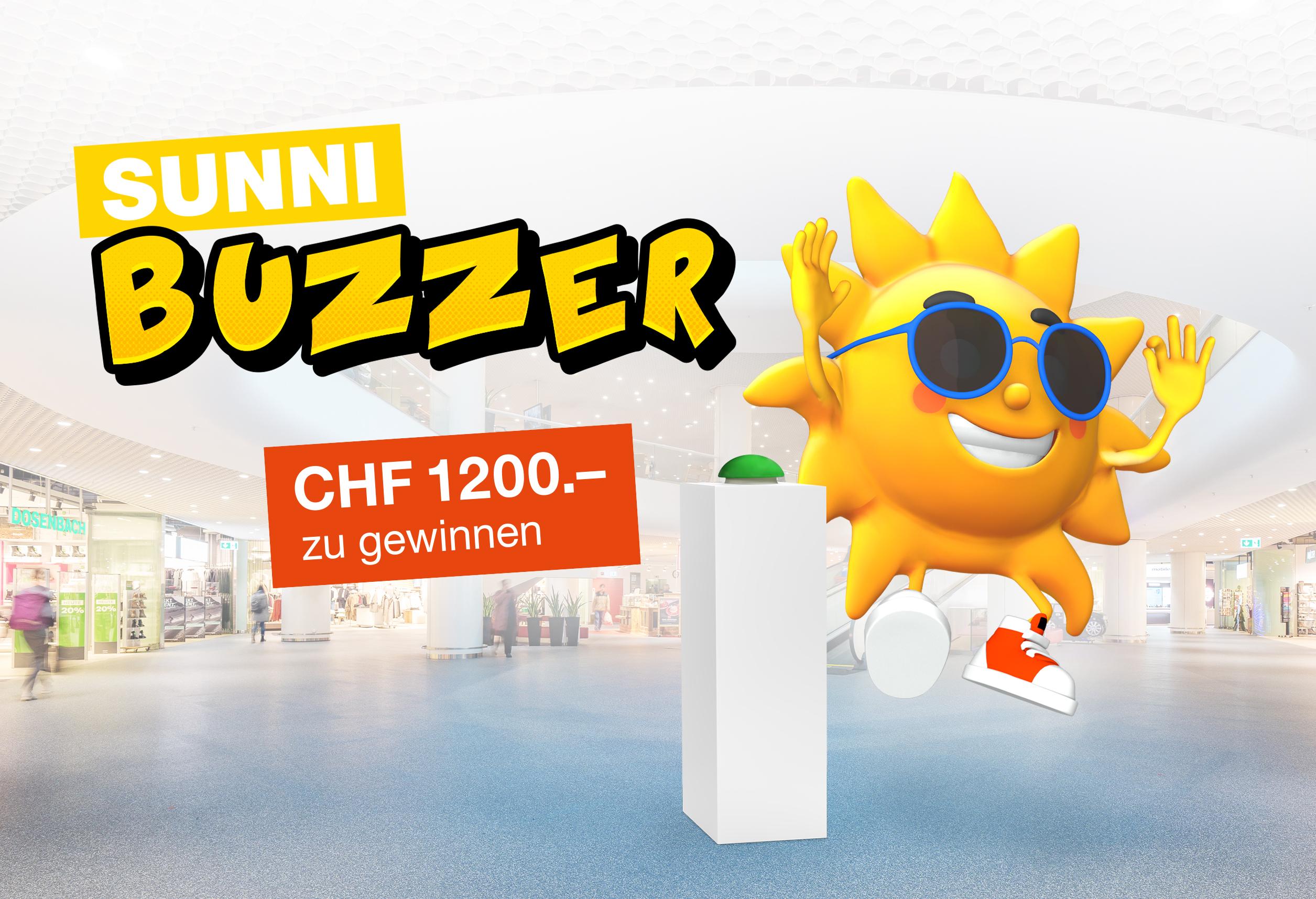 Besuchen Sie den SUNNI BUZZER am Samstag, 25. Oktober, 10 bis 17 Uhr im Sonnenhof, und buzzern Sie um die Wette. Es warten Sonnenhof-Gutscheine sowie attraktive Preise aus unseren Geschäften im Gesamtwert von über 1200 Franken auf Sie!